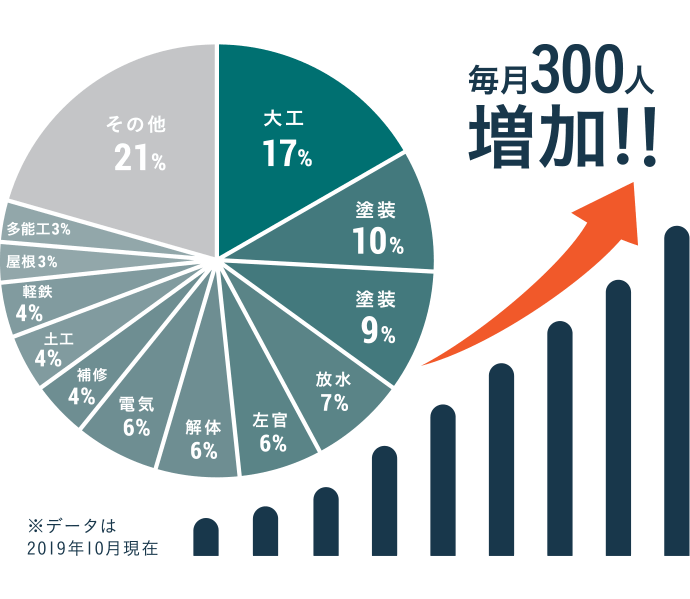 操作を簡単にしたことで登録数が日々増加しています。建設現場全体に新しい働き手を獲得していきます。